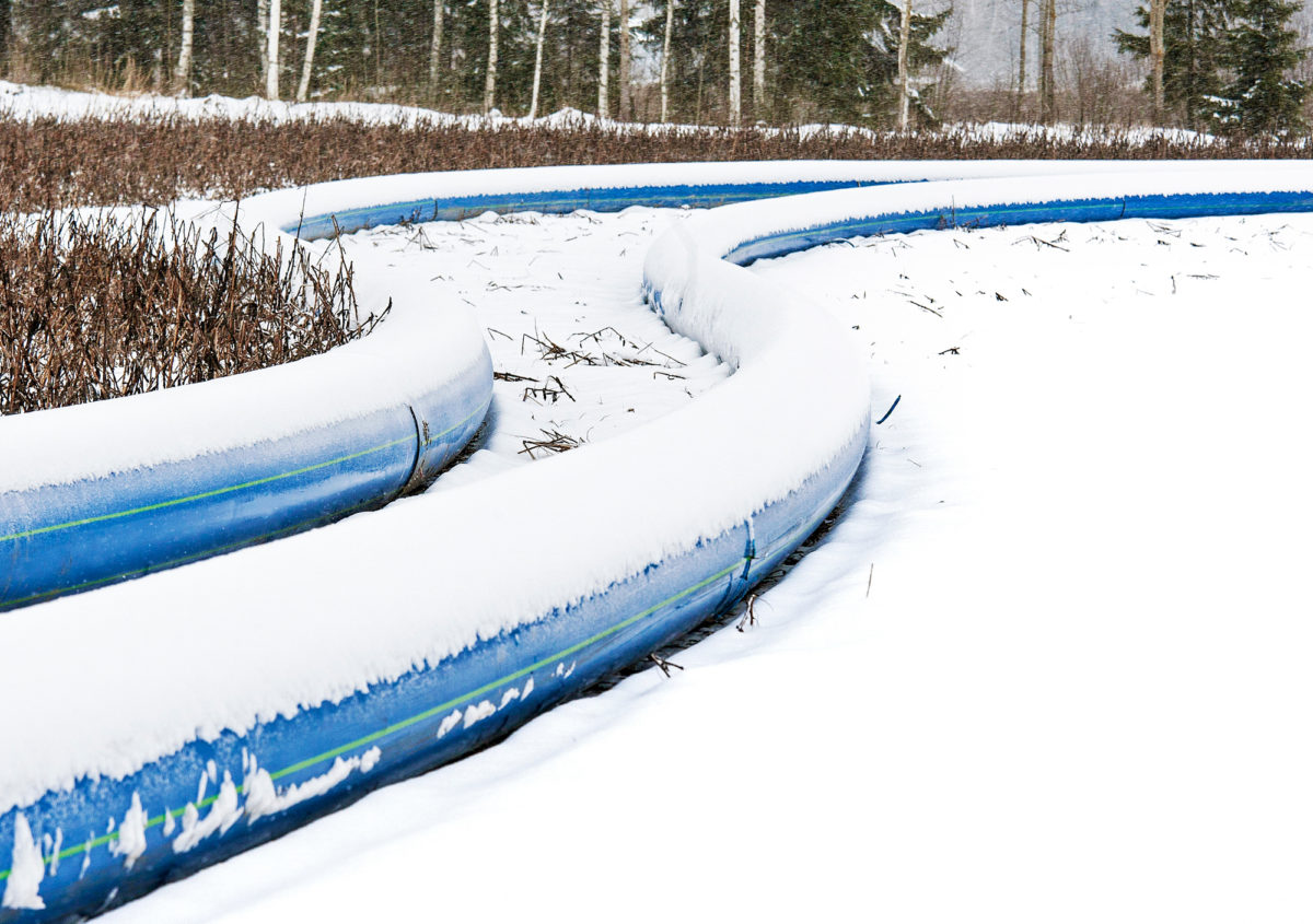 Vesijohdon asentaminen 2,5 metrin syvyyteen koko matkalla on myös tärkeä vaatimus, jottei missään vaiheessa rikota peltosalaojia. Vesijohdon välivarastointi pelloille sen sijaan on välttämätöntä. Putki hitsataan asennuspaikan vieressä valmiiksi sopivaan asennuspituuteen ja vedetään yhtenäisenä suuntaporattuun reikään. ■
