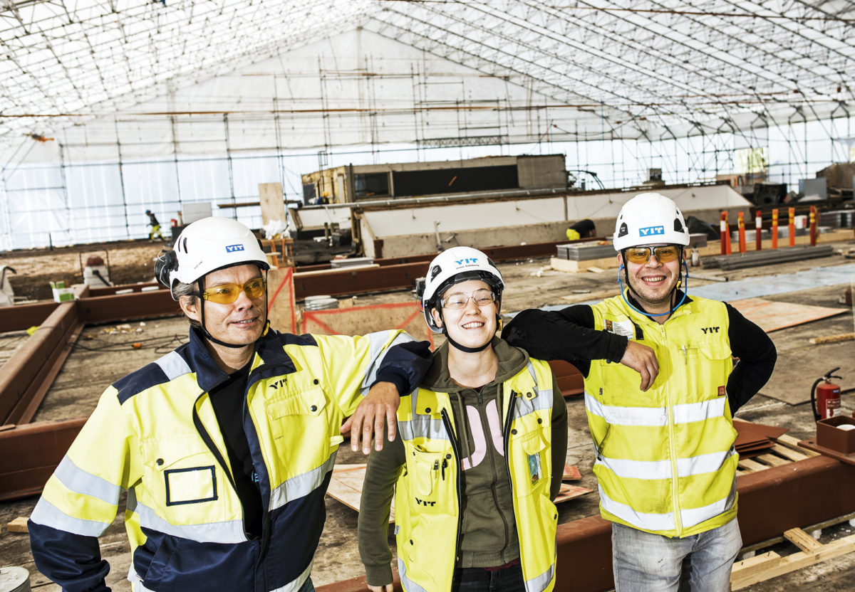 ”Konehuoneiden teräsrunkojen rakentaminen on kattohommista kaikista vaativin työ”, katto- ja julkisivu-urakoita ohjaava YIT:n työnjohtaja Matteus Knuuti kertoo. ■