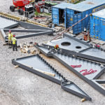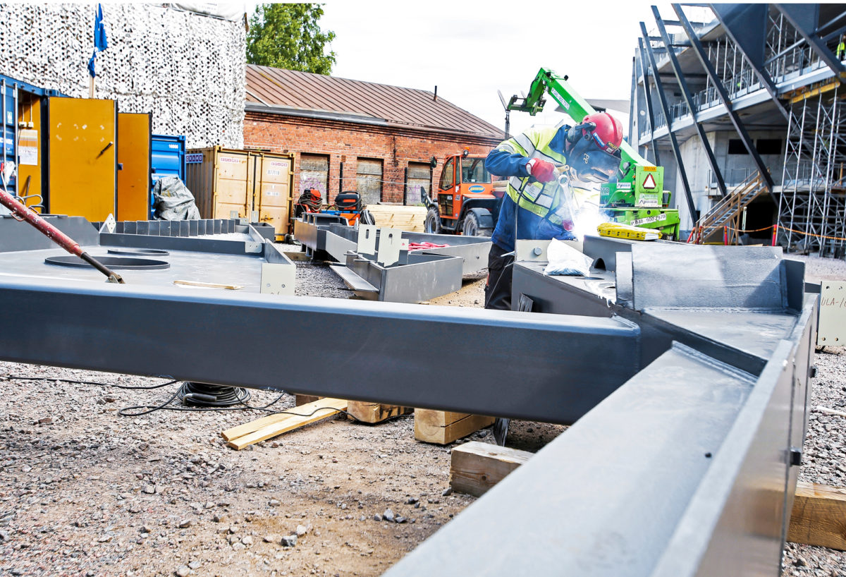 ”Teräskaaresta ja esijännitetystä betonilaatasta muodostuvan sillan päälle nousee kolme kerrosta taloa. Mitoitustehtävä on lievästi sanoen vaativa. Kaaren päätä sitovassa vetosauvassa vaikuttaa 100 MN voima”, kertoo projektin vastaava rakennesuunnittelija Tapio Aho Ramboll Finland Oy:stä.