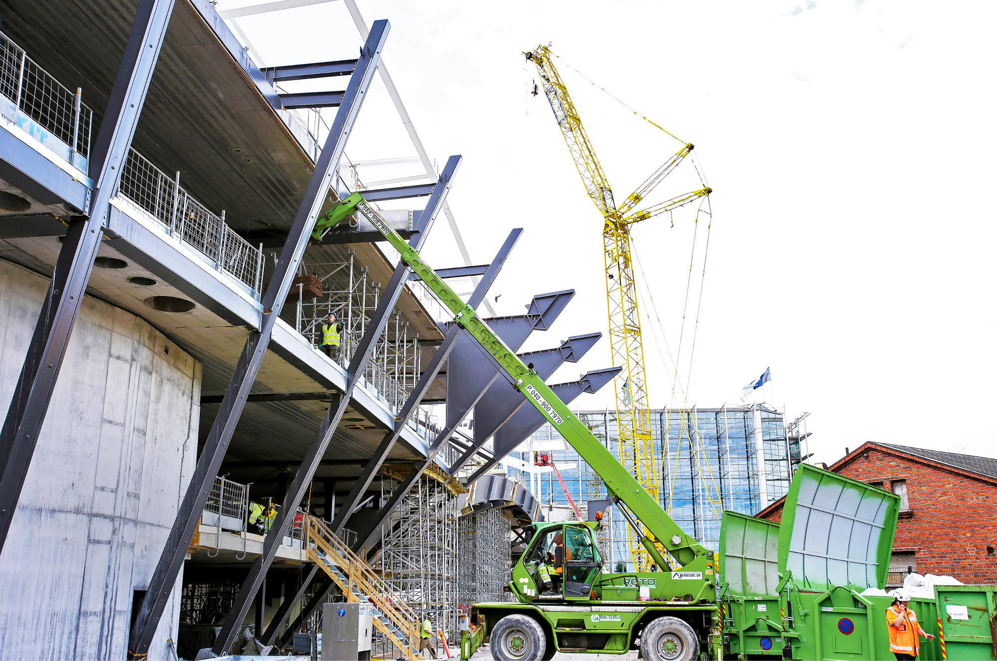 ”Myös geometria on erittäin vaativaa – kantavan teräskaaren lisäksi julkisivuissa ja katossa. Eteläinen julkisivu on vinokulmainen, ja kattomuoto aaltoilee”, Tero Seppänen kertoo.
